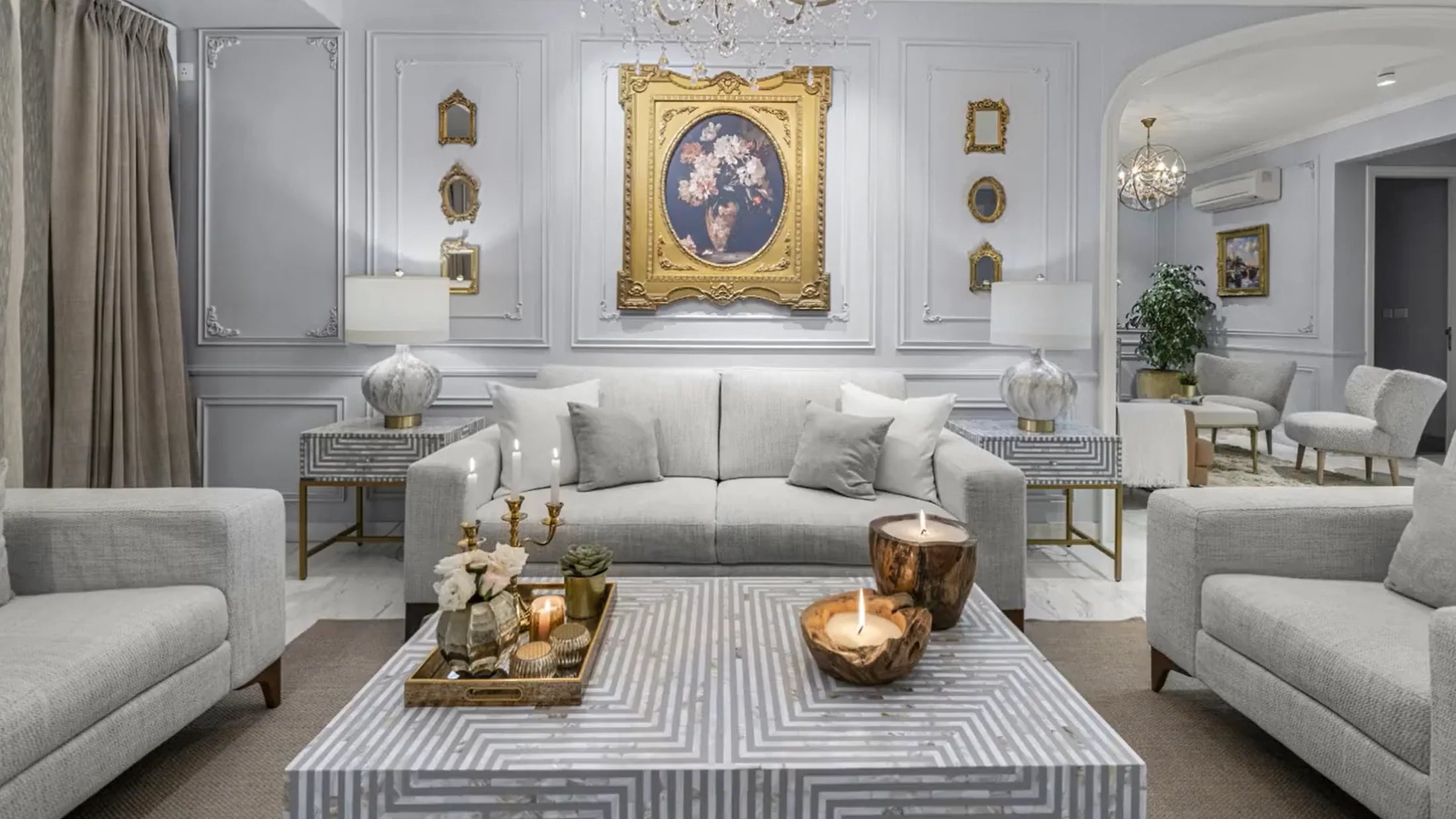 Blending artistry with functionality, our client curated an exquisite living room ensemble, seamlessly integrating two patterns to customise our nesting table set, tailored to complement the expansive elegance of their space.