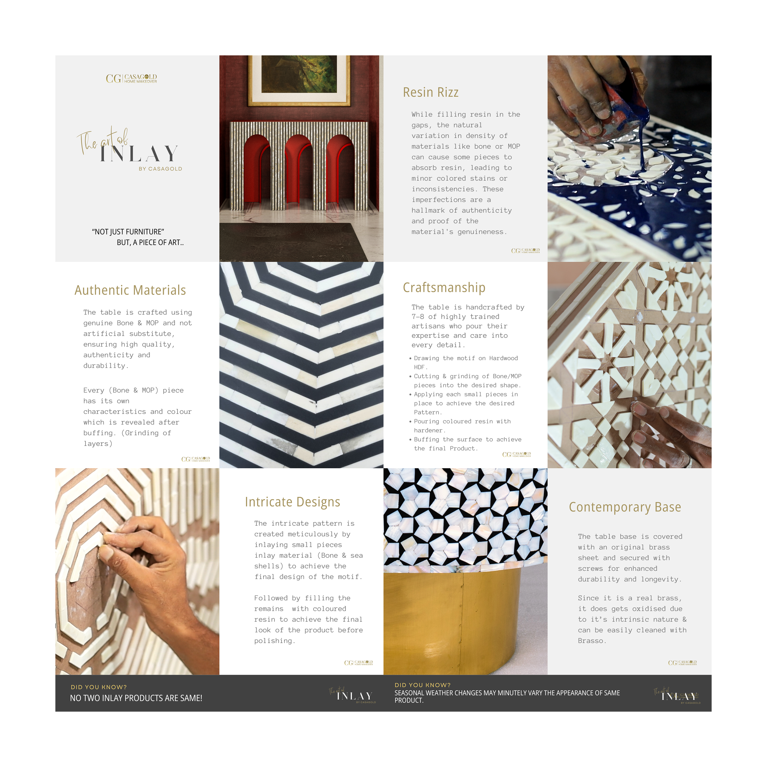 Choose from a curated selection of high-quality materials for the table's frame and inlay elements. - Inlay Patterns and Designs: