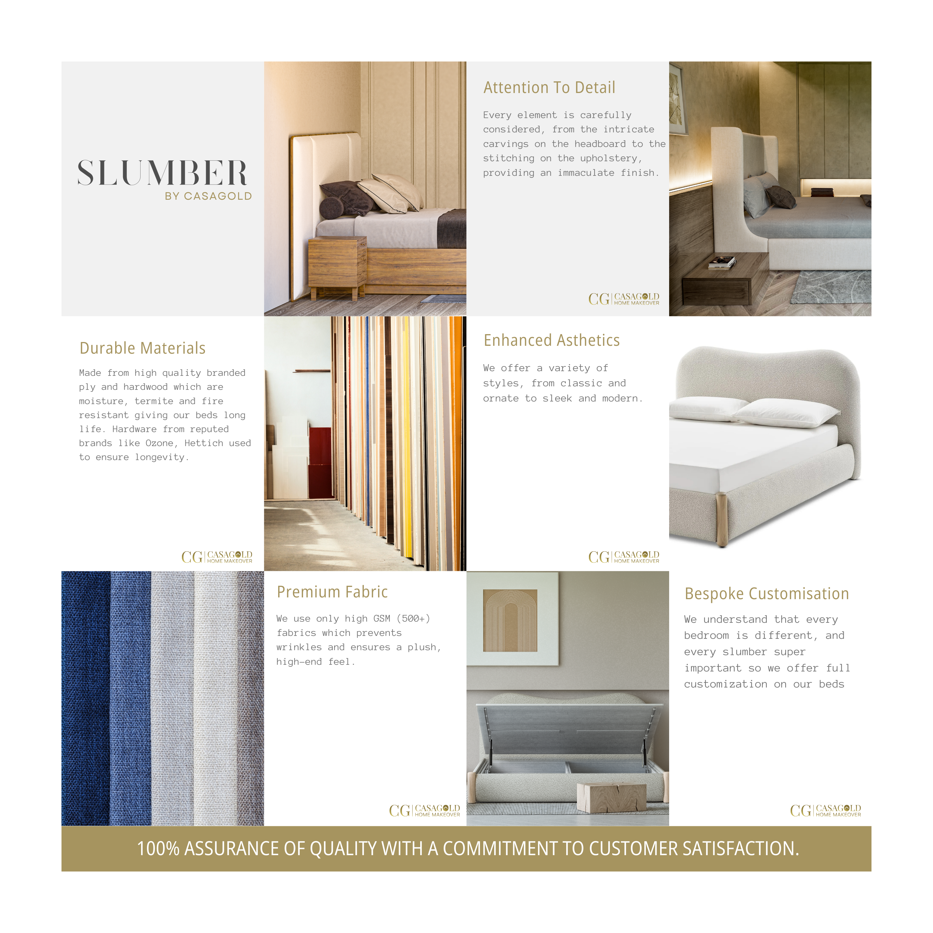 At Casagold, each bed exudes timeless elegance blending meticulous details like tufted panels, woven cane, buttoned accents and hand-carved sections. Handmade by skilled artisans, these beds are unique with subtle variations that enhance their individual character. A seamless combination of style & quality to elevate your bedroom into a space of luxury and sophistication.